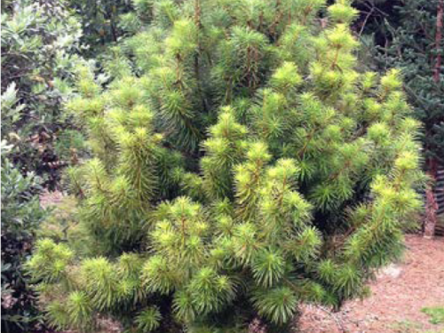 The conifer, Pinus monticola 'Crawford' (Crawford Western White Pine) after pruning