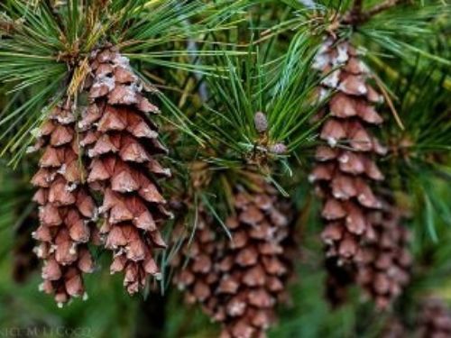 Since we're talking about the pine family, what about actual pines, which are conifers of the genus Pinus? They have seed and pollen cones, too. Some are very structural, such as those on most mugo pines; they look as if they have been carved by artisans out of tropical wood: