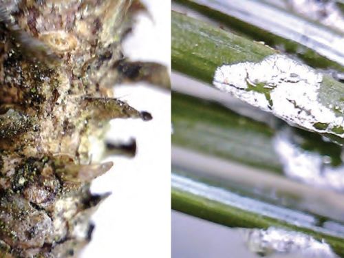 QUESTION: I have a Pinus aristata which has either Rhizosphaera needle cast, or worse, Stigmina, on the needles and stems. I am using a small home microscope to look at the black dots, but I am wondering if there is someone knowledgeable of these diseases who might be willing to discuss them.