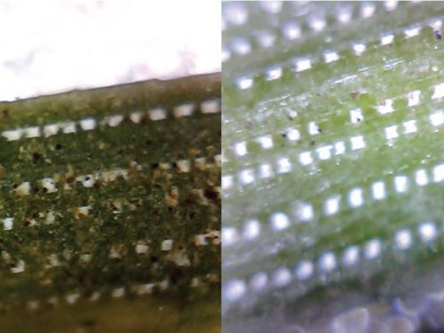 Needless to say, using the equipment in the field was difficult, and, after one try, I quit. After that, I took my samples, sealed them in plastic bags, and put them under the ‘scope. Here are the results: