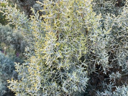 Close up of foliage of Cupressus arizonica var. glabra 'Blue Ice'
