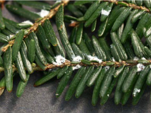 The conifer, P. aristata at the Chittendon Locks: no signs of the disease (black dots),