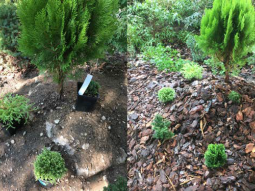 When the weather warmed enough, I planted conifers in four focal points for interest to the new plot, including Pinus parviflora ‘Fukai’, Picea pungens ‘Globosa’, Abies koreana ‘Horstmann’s Silberlocke’, with numerous smaller conifers, shrubs, hostas, and grasses, including Miscanthus sinensis ‘Strictus’, Picea abies ‘Pumila Nigra’, Pinus mugo ‘Winchester Compacta’, and Berberis thunbergii 'Monlers’.