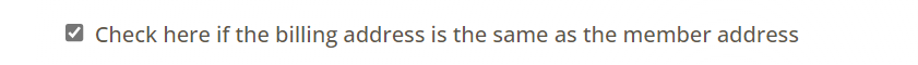 - Billing Information. There is an option to use the same that the billing address is the same as the member address.
