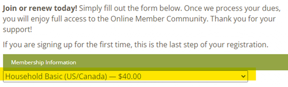 - Membership Dues: Important: You must complete this section to complete your membership application. The cost of the membership is based on the Membership Selection made in the previous section.