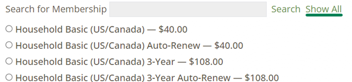 - Membership Selection: Click Show All to view all additional memberships.